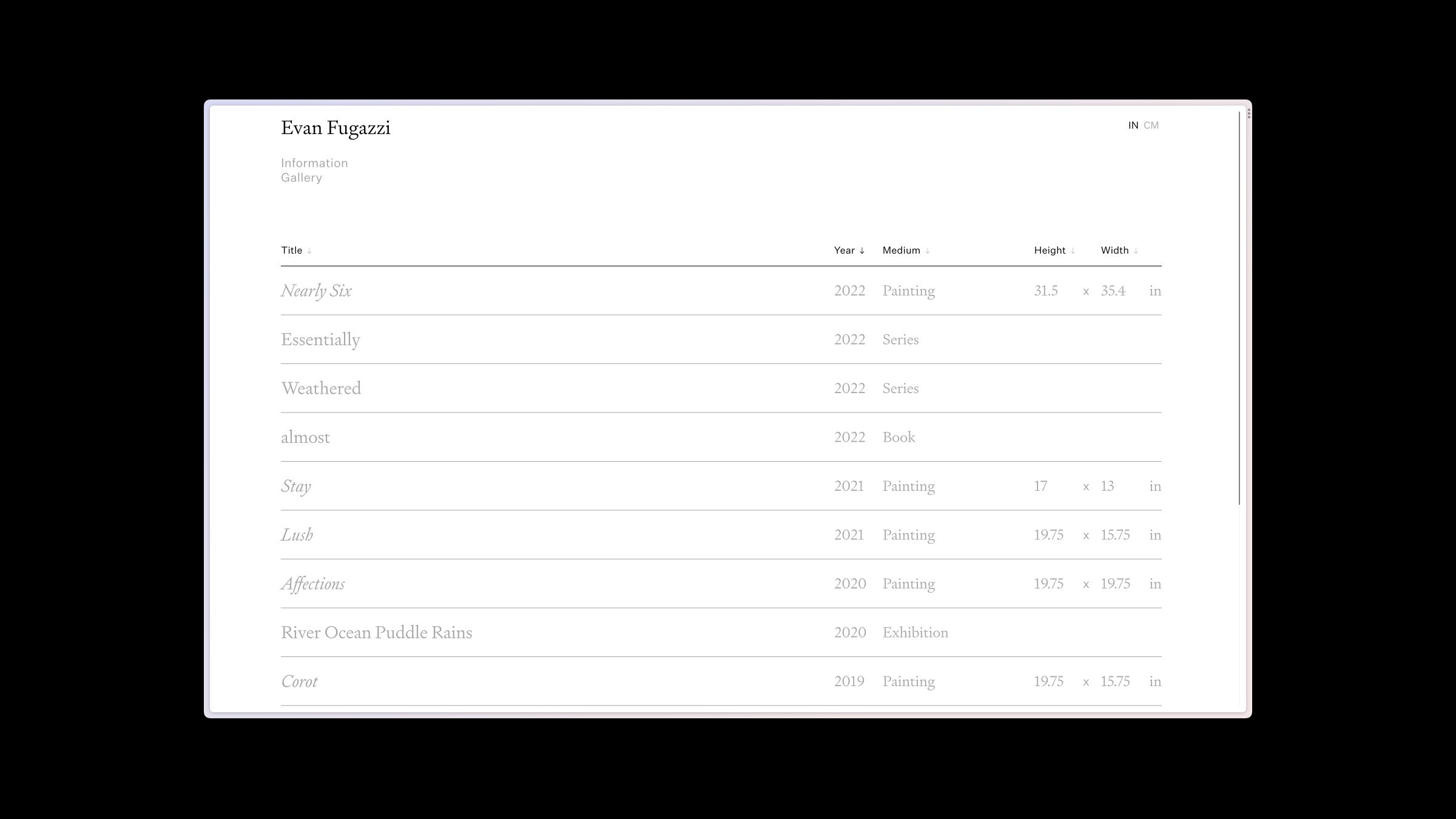 Portfolio website for Amsterdam-based artist Evan Fugazzi.